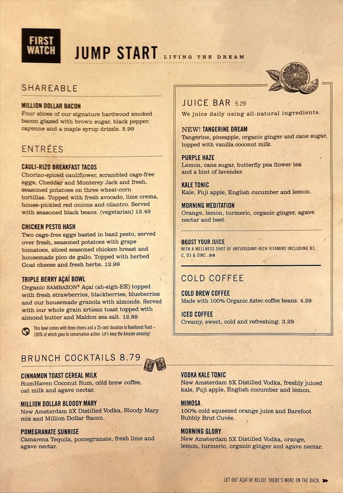 First Watch is also perfect for families, offering the “Good Morning” Pack, ensuring a hearty start for breakfast lovers. Customer reviews emphasize not just the food’s quality, but also the warm, welcoming atmosphere and attentive service. Join the brunch revolution that keeps patrons returning for its inventive seasonal dishes and friendly vibe!